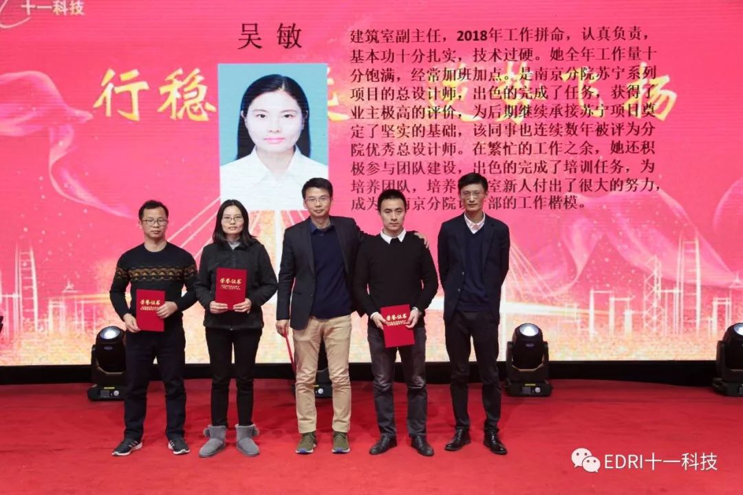 總結表彰會在《我們是一家人》的背景音樂中開始,各部門負責人就部門2018年度工作完成情況對全體干部員工進行了匯報,南京分院副院長袁明軍同志對總承包部門工作進行了匯報,南京分院副董事長黃炎同志對南京分院進行了匯報,南京分院院長戚海浪同志代表綜合管理部對2018年度工作進行了匯報。