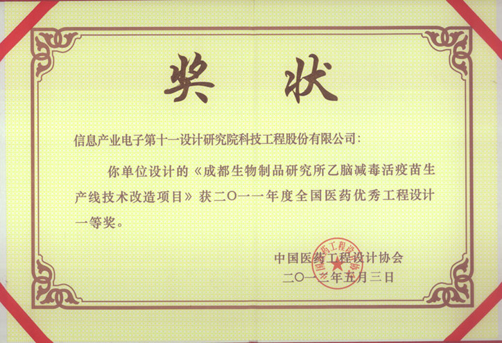 • 成都生研所乙腦疫苗2011全國(guó)醫(yī)藥一等獎(jiǎng)